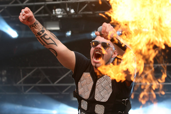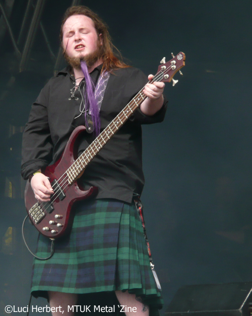 STEELWING’in ardından sırada İskoçyalı “true Scottish pirate metal” grubu ALESTORM vardı. Metalin bütün karizmasını yerle bir eden imajıyla vokalist Christopher Bowes sahneye geldi. Üstü çıplak, kıllı, beyaz-pembe-açık yeşil ve düğün tonlu klavyesini eline almış ve acayip bir şekilde Türk’e benzeyen bir adam düşünün. Fotoğraf makinesini almadığıma pişman oldum hakikaten. Adamı yolda görsem “Erdal naber lan?” derim, o derece.
