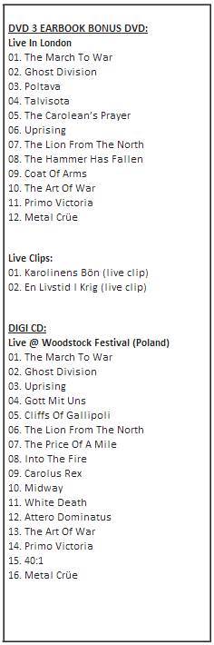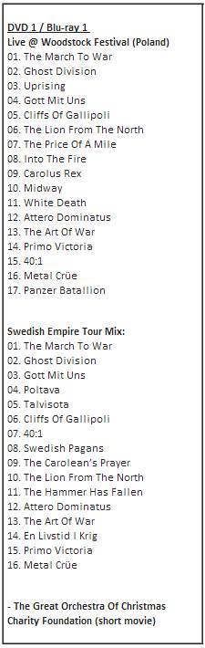 “Swedish Empire Live” adlı DVD’nin detayları da şöyle.